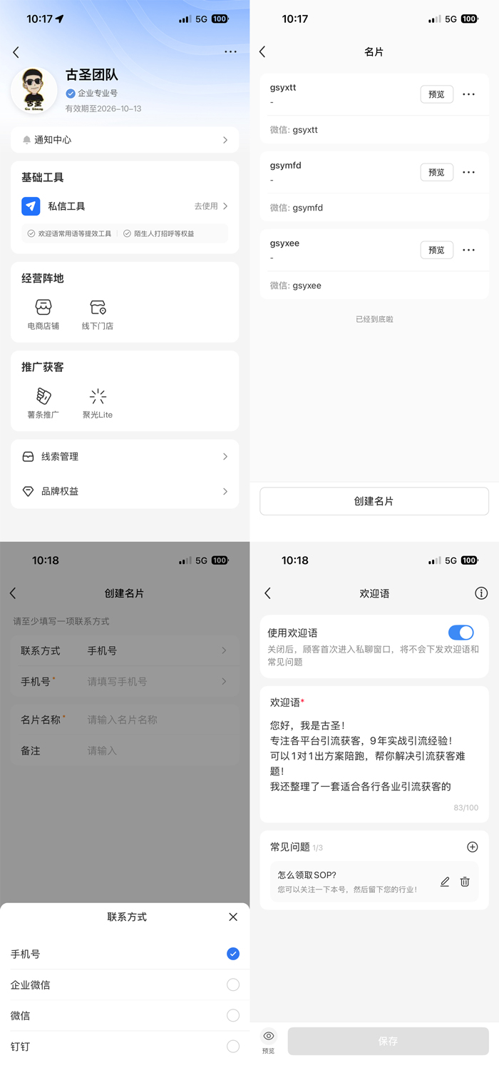 当前位置:首页视频教程 正文 课程介绍:有不少学员做小红书知道开通蓝V专业号可以发微信。但是不知道怎么设置,因为蓝V需要聚光投放才可以开通私信功能。这些还是有不少学员不懂的,所以专门录制一期课程给学员学习。功能截图:下载地址:请开通vip查阅 标签:小红书引流 未经允许不得转载! 作者:古圣,转载或复制请以超链接形式并注明出处专注精准获客。 原文地址:https://www.gusyl.cn/post/46.html发布于:2025-12-20